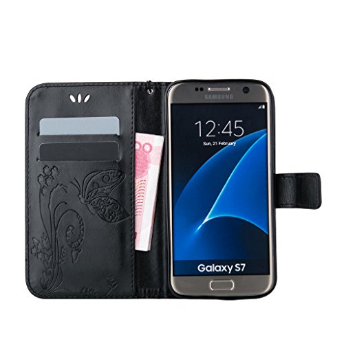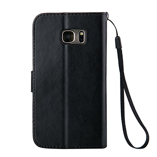 Zeebox Galaxy S7 手帳型 ケース カバー 高品質 落下防止 保護カバー 財布型ケース カード収納ホルダー&ストラップ付き マグネット式 Samsung Galaxy S7 対応 無期限生涯補償付き (ブラック)