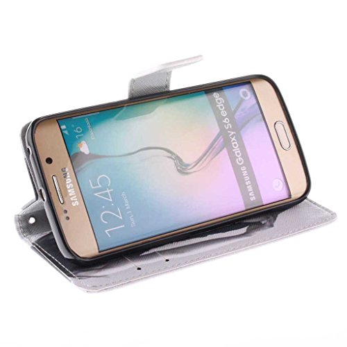 Galaxy S6 Edge 手帳型 ケース Zeebox 高品質 合皮レザー 保護カバー 財布型ケース カード収納ホルダー スタンド機能 マグネット式 防塵 耐久 Samsung Galaxy S6 Edge 対応 ケース カバー (ブラック #5)