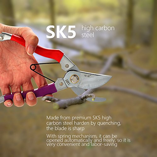 - ★剪定鋏は、焼入れにより硬化する高級SK5高炭素鋼から作られ、刃は鋭く、硬度が高く、摩耗しにくく、長持ちする