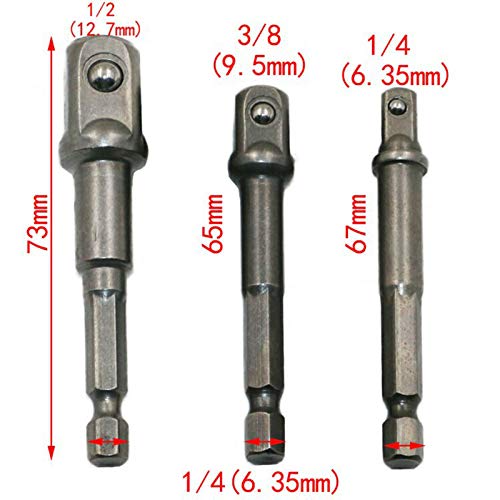 Zhaozheソケットアダプター アダプター 六角軸 3本組 インパクトドライバー用 ボルト・ナットの着脱作業に対応 (ロング)
