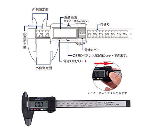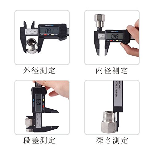 - 「多機能」:1、外径測定、内径測定、深さ測定、段差測定。2、セロボタンを押すだけでゼロ点セットができるので、差の計測などで役立ちます。3、自動起動・シャットダウン
