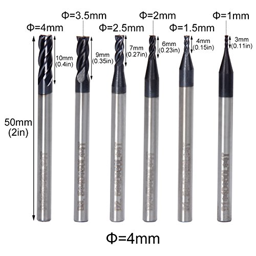 Zigwin フライスシャンク 加工用カッター 4刃 鋼製 ストレート 1mm 1.5mm 2mm 2.5mm 3.5mm 4mm 6本セット
