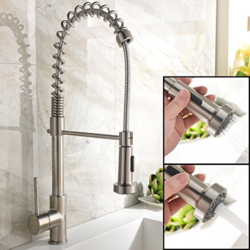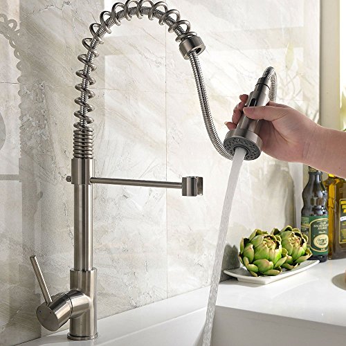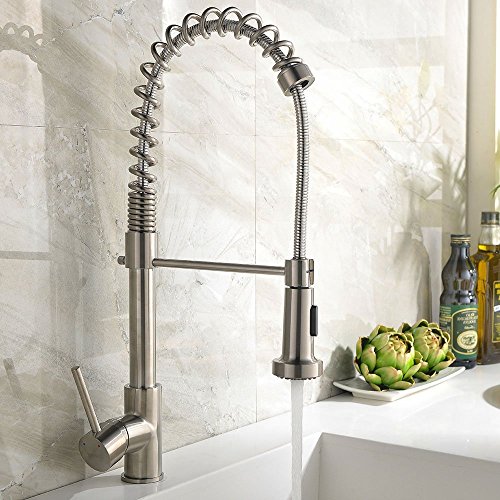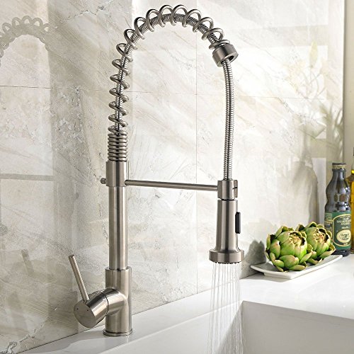 Zingcord Best Single Handle Brushed Nickel Pull Out High Arch Prep Sprayer Kitchen Sink Faucet, Commercial Pull Down Kitchen Faucets [並行輸入品]