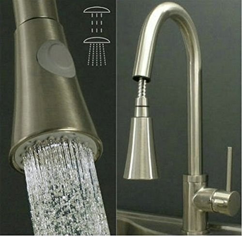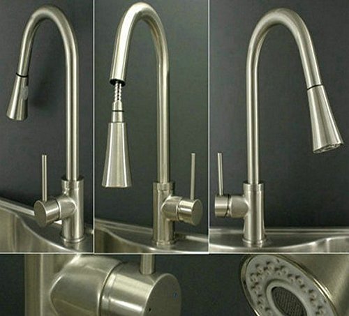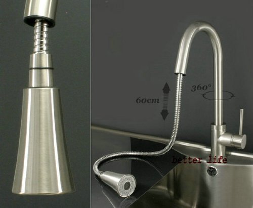 Zingcord 360 Degree Rotation Single Handle Kitchen Sink Pull Out Spray Mixer Tap Faucet, Nickel Brushed [並行輸入品]