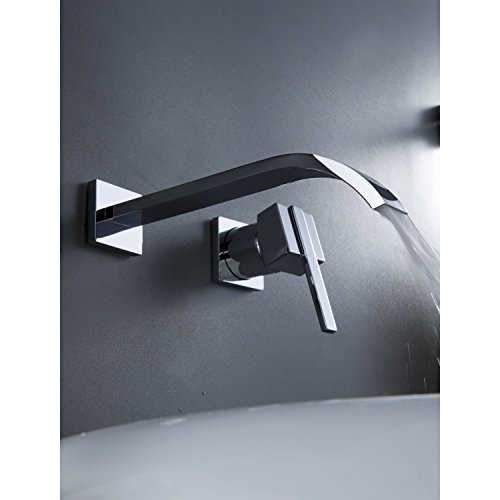 Zingcord Wall Mount Contemporary Brass Widespread Waterfall Bathroom Sink Faucet Single Handle Mixer Taps Bath Tub Faucets Lavatory Cheap Discount Plumbing Single Hole Long Spout Vessel Sink Faucets [並行輸入品]