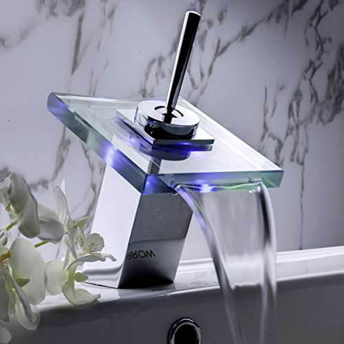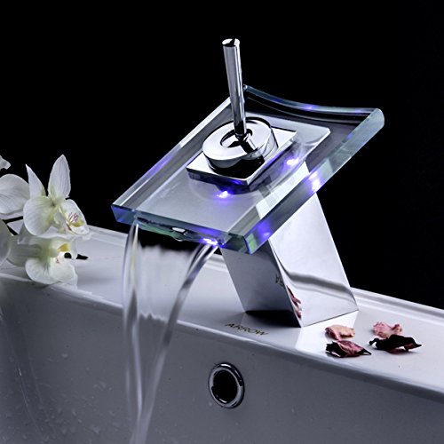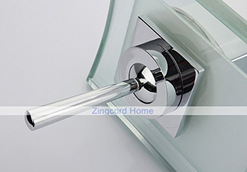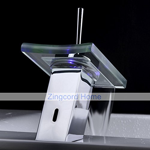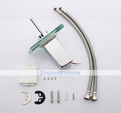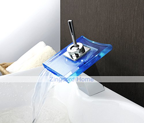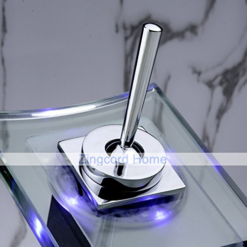 ZingcordブランドWaterfallガラス注ぎ口の色変更LED現代クローム仕上げシングルハンドルバスルームシンク蛇口