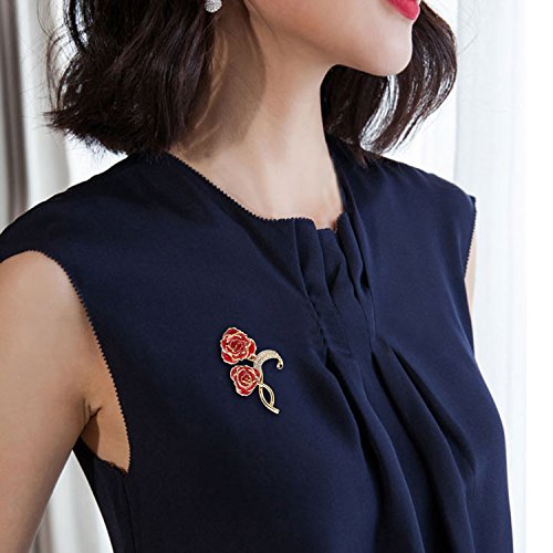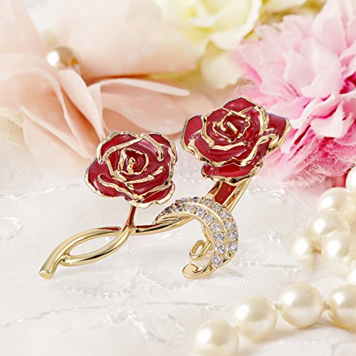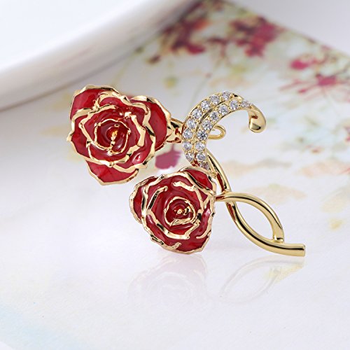 エレガントブローチ 薔薇 ブローチ 24K金箔ローズ バラ花 生花に浸し 永遠なラブ キラキラ クリスマス バレンタイン 記念日 誕生日 贈り物 (レッド, Bタイプ)
