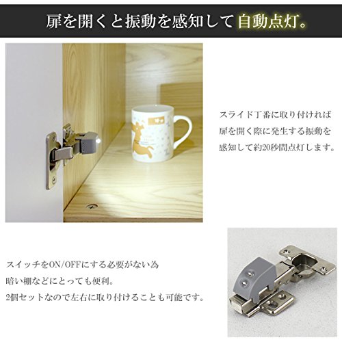 ZooooM 2個セット 振動 感知 LED ライト センサー 棚 照明 キッチン クローゼット 扉 蝶番 スライド 丁番 簡単 カンタン 便利 暗い 戸棚 省スペース 小型 コンパクト 設置 両面テープ 電池 式 (ホワイト) ZM-SINKURO-WH