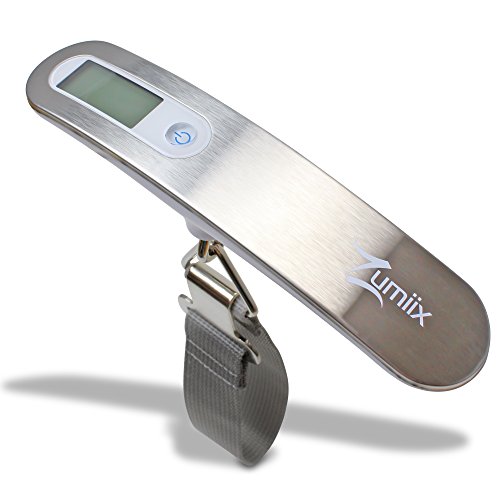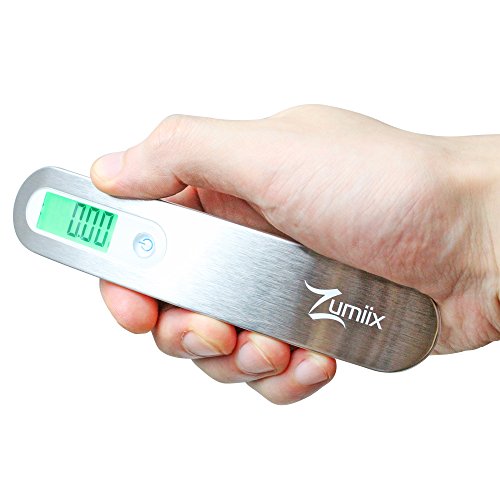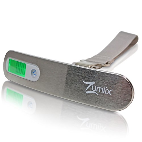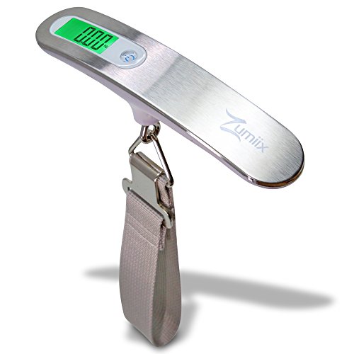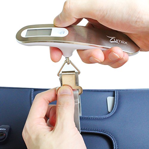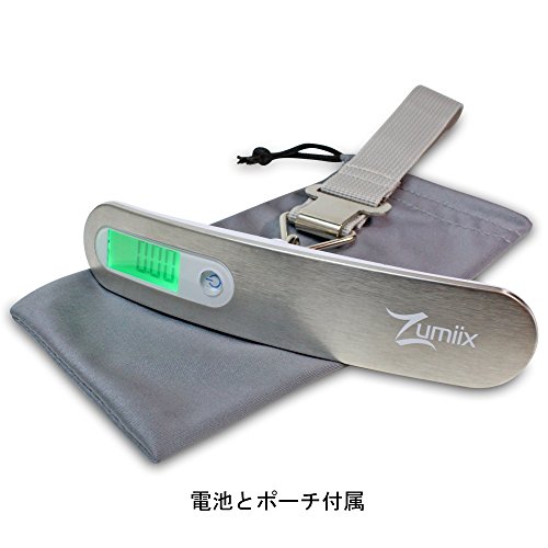 Zumiix ラゲッジチェッカー ベルト吊り下げ式 最大50kg 風袋引き機能 ステンレス仕上げ バックライト付液晶ディスプレイ 電池とポーチ付属 トラベルスケール/スーツケース計量器 旅行者に最適