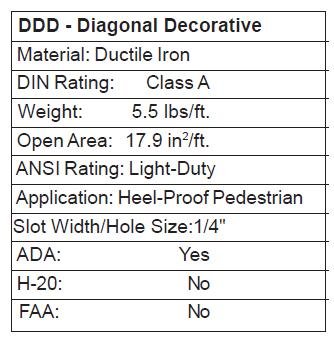 のZurn p6-ddd斜め格子の装飾、ダクタイル鋳鉄、足あたりには5 – 3 / 8インチ× 20インチの長さ、重量5.5ポンド。グレーチングにの何も表示されていない領域が足あたりに17.9平方インチ、DIN、ANSIの評価評価の軽、ADA準拠。