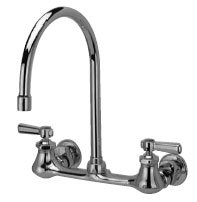 クロムめっきの真鍮キャスト商用グレードの8インチの光沢backmountシンク蛇口と四半期中心線のセラミックディスクカートリッジ、ショート・回転Inlets提供調整機能センターから7 – 1 / 4 " to 8 – 3 / 8 "と8 "をリジッドまたはスイングGooseneck注ぎ口を2.2 GPM圧力補正エアレーターは、ANSI a112.18.1規格を遵守(の)を参照してください。ユニットは、2 – 1 / 2 " vandal-resistant色分け金属レバーハンドルが表示されます。