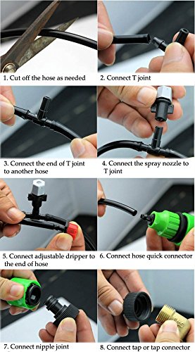 - パッケージに含まれます: 1×5メートルホース 2×クイックコネクタ ティージョイント付き10×ドリッパー