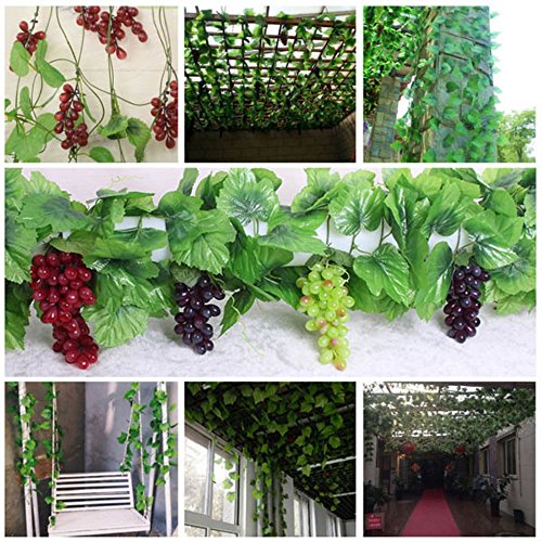 この人工ブドウは、プラスチックや布材料で構成されている、葉。それは長い時間のための素晴らしい装飾することができるように、THS本当の植物とは異なり、このブドウの葉は、オフに死ぬことはありません。この人工ブドウの葉を吊るすことは、それはあなたの自宅、オフィス、庭やなどのための美しい飾りになります