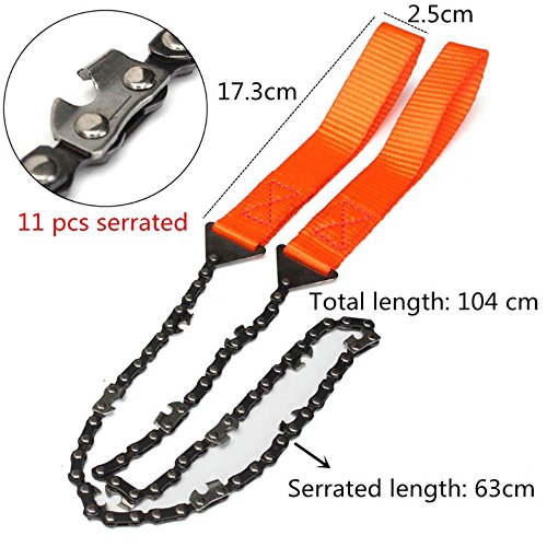 これは、ポケットサイズの手のチェーンソーです。それはキャンプ、ハイキング、バックパッキング、他のすべてのアウトドアスポーツに不可欠なサバイバルツールです。また、家や庭園の使用のための優れたツールです。迅速かつ容易に木材をカットします。緊急時に火災や避難所を作るために木材を切断するための偉大な生存ツール。