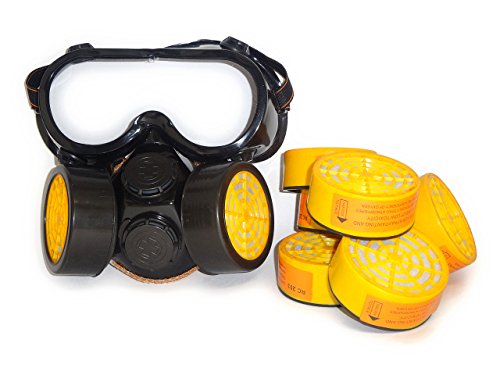 - 防毒マスク、ゴーグル、交換用フィルター(6個)のセットになります(フィルター計8個)