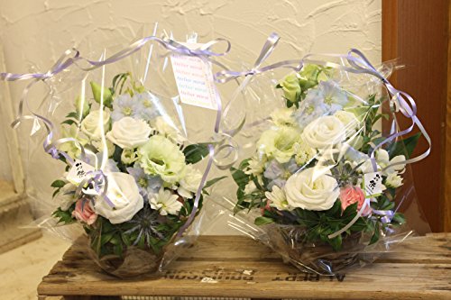 ※生花は生ものですので季節・天候などによって市場への入荷が変わってきます 当日一番ステキで美しく、新鮮な状態のものを選んで仕入れてきますのでお写真の色とは変わって来ますが、きっと喜んでいただけるものをおつくりできると自負しております。 写真は大きさとボリュームのイメージの参考となります。ご了承ください。