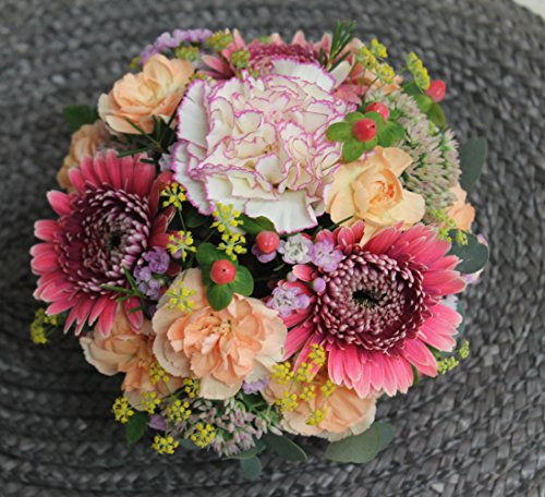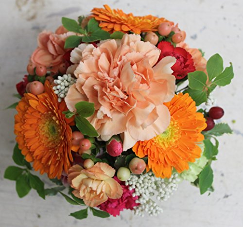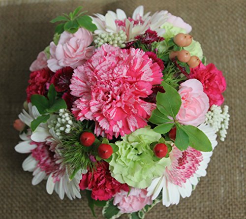 ※生花は生ものですので季節・天候などによって市場への入荷が変わってきます 当日一番ステキで美しく、新鮮な状態のものを選んで仕入れてきますのでお写真のお花とは変わって来ますが、きっと喜んでいただけるものをおつくりできると自負しております。 写真は大きさとボリュームのイメージの参考となります。ご了承ください。