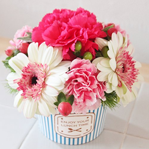 petit ストライプ cup 生花のアレンジメントです 。「誕生日」「お祝い」「贈物」 ■■ お届け不可日/12月4日(月)14日(木)18日(月)22日(金) ◆◆ お届け日時指定便/指定可能時間帯はお届け先都府県により異なります。①すべての時間帯指定可能な地域: 関東.信越.北陸.中部.近畿及び中国.四国(下記の県を除く) ② 14時以降の時間帯指定となる地域・県 :東北・九州及び山口・愛媛・高知各県(詳細は下欄参照)