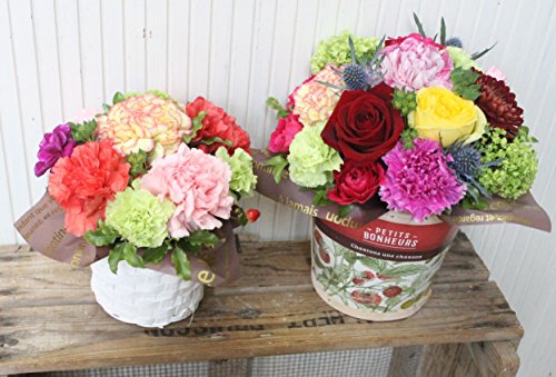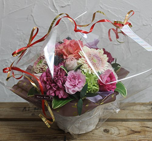 ※生花は生ものですので季節・天候などによって市場への入荷が変わってきます 当日一番ステキで美しく、新鮮な状態のものを選んで仕入れてきますのでお写真のお花とは変わって来ますが、きっと喜んでいただけるものをおつくいたします。 写真は大きさとボリュームのイメージの参考となります。ご了承ください。