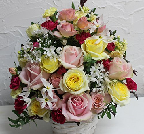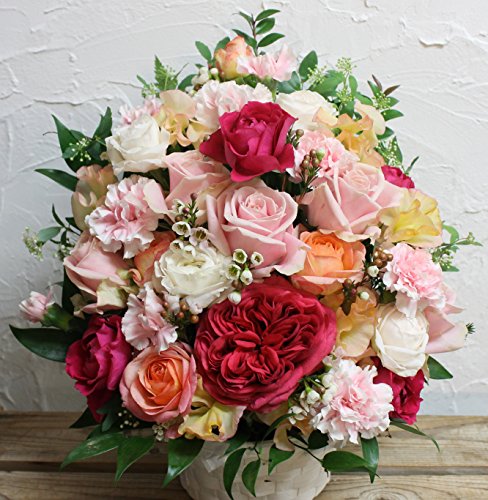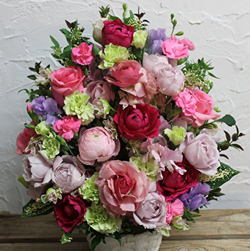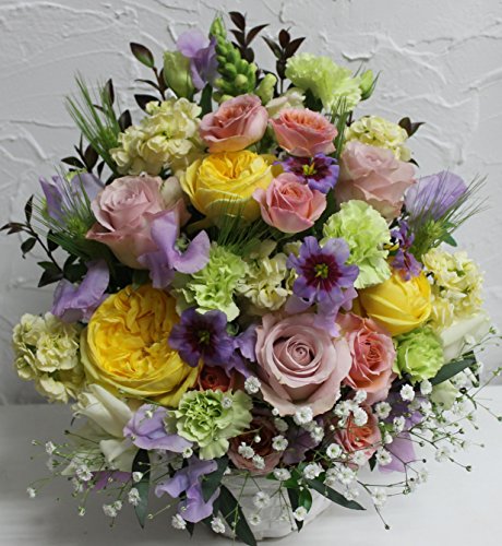 ※生花は生ものですので季節・天候などによって市場への入荷が変わってきます 当日一番ステキで美しく、新鮮な状態のものを選んで仕入れてきますのでお写真のお花とは変わって来ますが、きっと喜んでいただけるものをおつくりできると自負しております。 写真は大きさとボリュームのイメージの参考となります。ご了承ください。