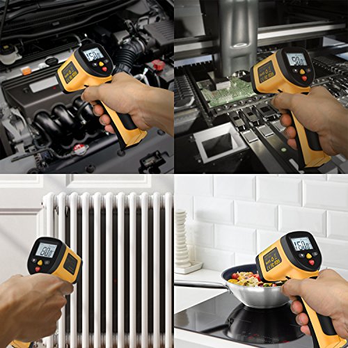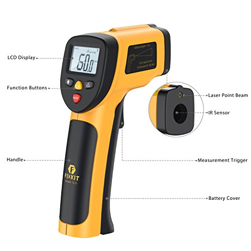 Fixkit 赤外線放射温度計 非接触レーザー デジタル 温度計 調理用 バックライト レーザーポインタ付 電池付き(-50°C to 450°C計測可) TL-T1
