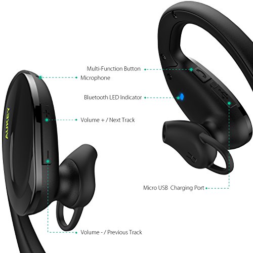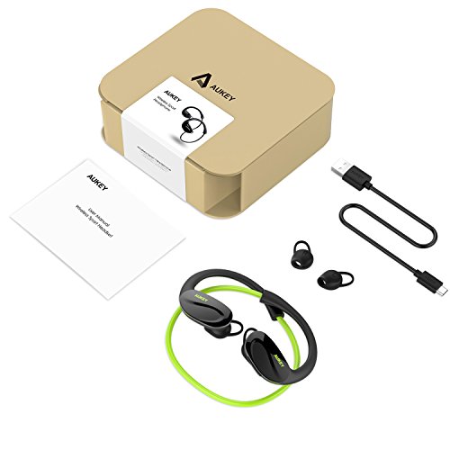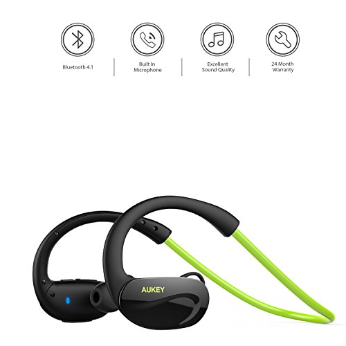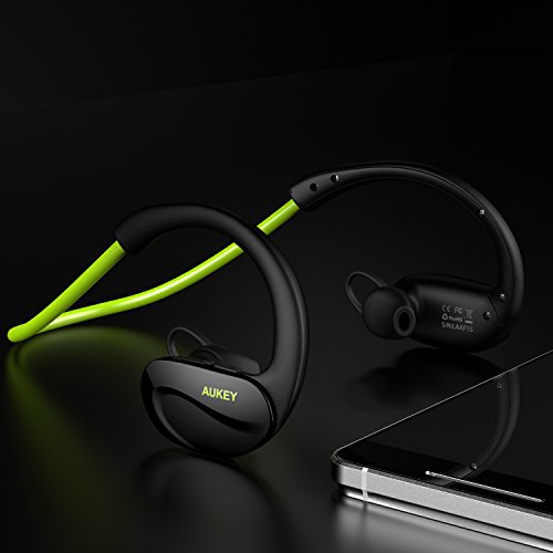 AUKEY Bluetooth ヘッドセット ワイヤレススポッツイヤホン 耳掛け式 8時間連続再生 iPhone 7,7 Plus,iPhone 6S,6S Plus,Sony,Android スマートフォンなど対応 (グリーン) EP-B34