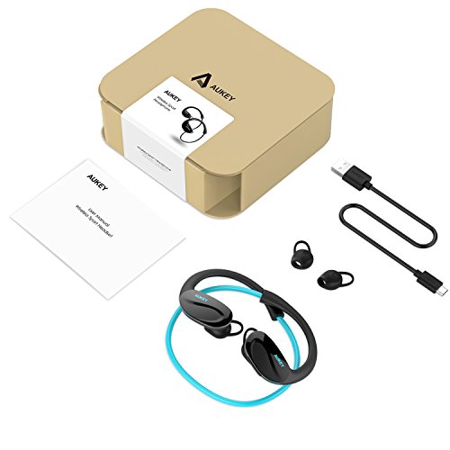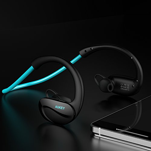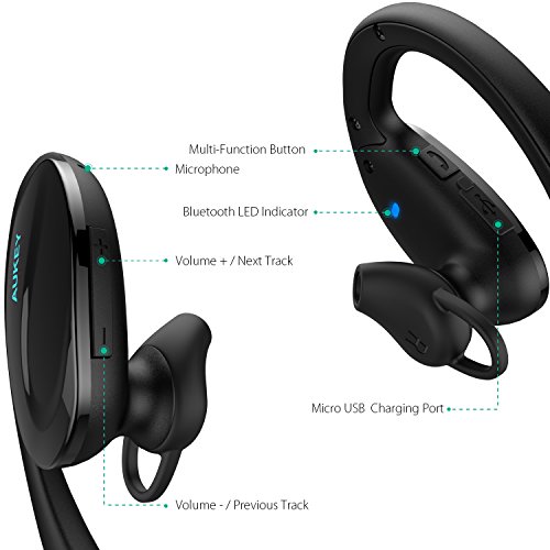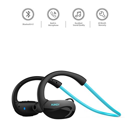 AUKEY Bluetooth ヘッドセット ワイヤレススポッツイヤホン 耳掛け式 8時間連続再生 iPhone 7,7 Plus,iPhone 6S,6S Plus,Sony,Android スマートフォンなど対応 (ブルー) EP-B34