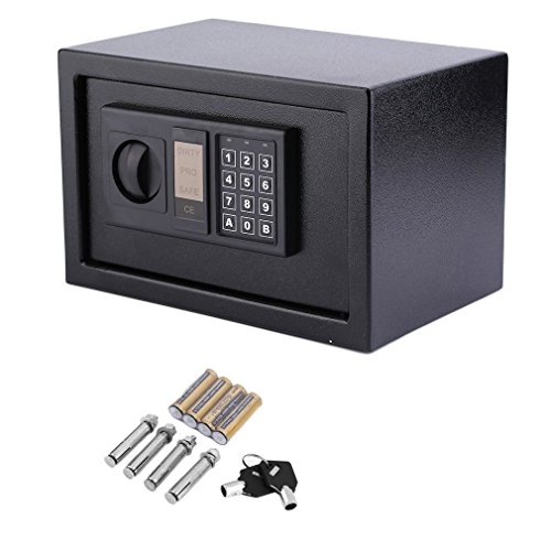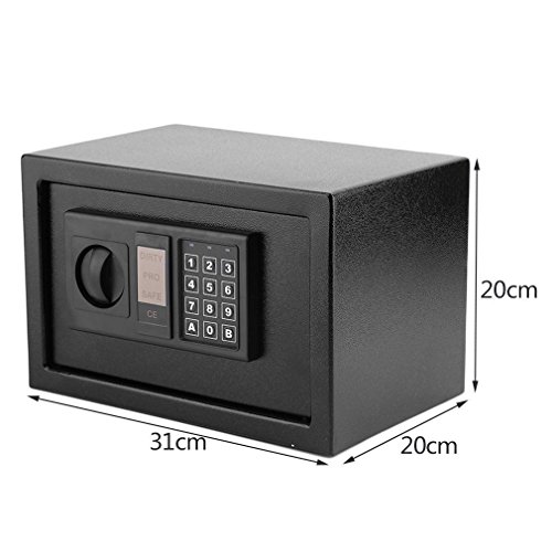 Features: 100% and high quality! It is durable and convenient.Simple design and easy to use.Batteries and fixing bolts included.Fine powder coated finished.High security electronic lock with 2 back up keys. Specifications: Main material:Steel Capacity:8.5L Colour: Black Size:310*200*200mm Package size:355*240*250mm Package included:.DetailsPackage size: 355*240*250mmType: SafesFixture Type: Surface MountedCapacity: 8.5LLock Type: Digital and keyColour: 310*200*200mmWeight: 5.kgs