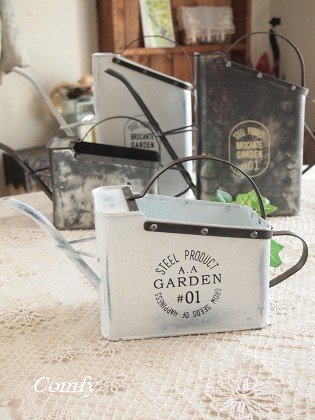 空っぽで不要になったオイル缶をリサイクル! オイル缶の形をそのまま活かすことで、 四角い形が個性的なジョウロに生まれ変わりました。 愛用され続けてだんだんと塗装が剥げていく様子を アンティーク風加工で丁寧に表現。 無骨なメタルカラーはジャンクガーデンの景観にぴったりです! サイズ:約W305×H165×D100mm 素材:ブリキ