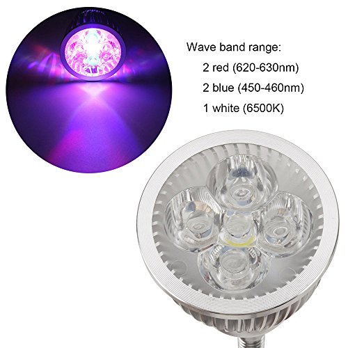 - 波長範囲:2赤(620-630nm)、2青(450-460nm)、1ホワイト(6500K)。
