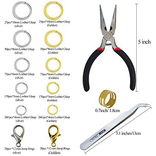 - 素晴らしい品質のセットがあります。このジャンプリングは4 mm , 5 mm , 6 mm , 8 mm , 10 mm、ロブスタークラスプが12 mmであることを確認します。当社製品は、barssリングで合計1200入りは、湾曲したピンセット、コンテナボックスとのNOSEDペンチ1個入り。のために使用したり、DIY、ジュエリーの工芸になります。