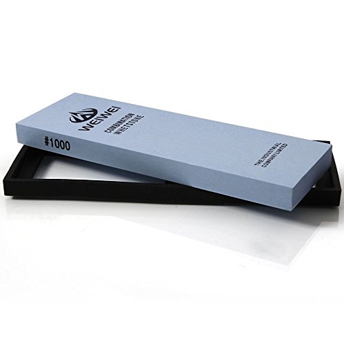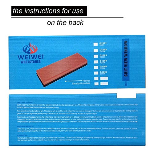 4. Do not use whetstone to sharpen serrated blades or scissors.To avoid knife damage,sharpen it by employing light pressure.For best results,the face of your stone should be flat.After extended use the stone may require grinding to maintain a flat surface.