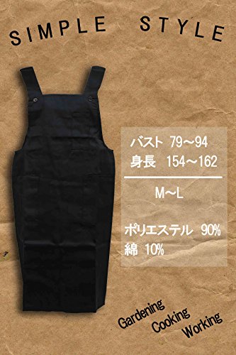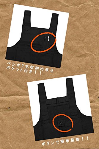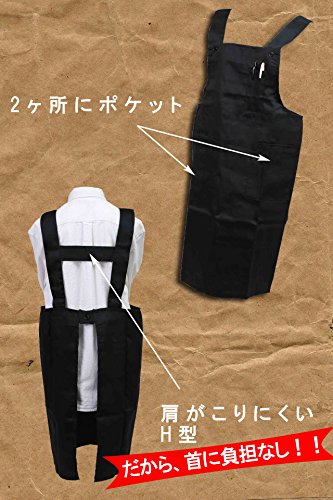 シンプル 無地 エプロン ペン ポケット 付き カフェ ガーデニング キッチン 作業用 (ブラック)