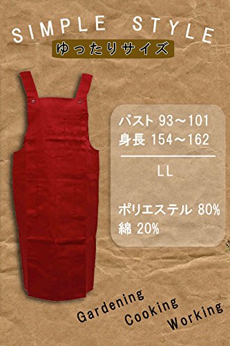 大きめ 無地 エプロン ペン ポケット 付き カフェ ガーデニング キッチン 作業用 (レッド)