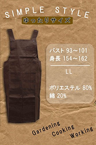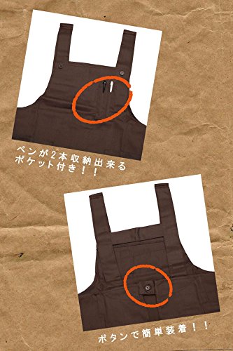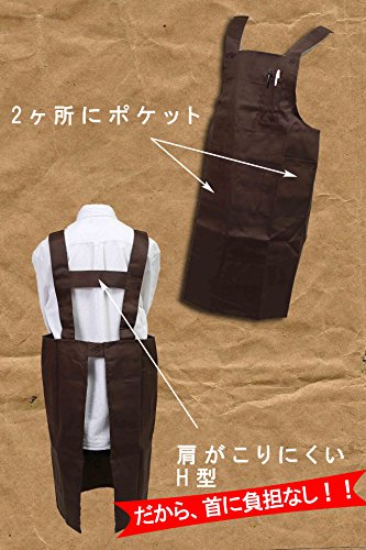 大きめ 無地 エプロン ペン ポケット 付き カフェ ガーデニング キッチン 作業用 (ブラウン)