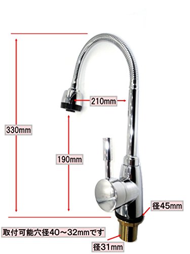 - 本体高さ330mm×出入り210mm自在が利きます。 キッチン取付可能穴径40mm~32mm