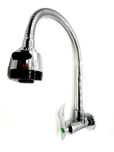 - シャワー型 壁取付 壁取出し 単水栓 業務用 厨房用 蛇口 キッチン 洗い物用 自在 首振り レバー