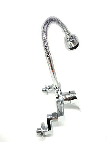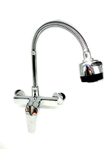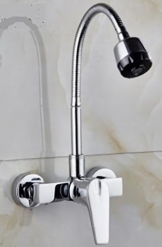 - キッチン台所 壁付けシングルレバー混合水栓です。安価で、重厚感あり、ピカピカで、レバーの動きや温度調節もスムーズです。