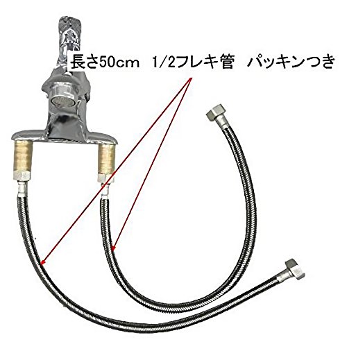 - 1/2フレキ管長さ50cm 2本セットなので、即、洗面台下の止水栓に接続できます。