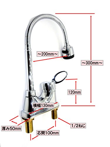 - 取付穴ピッチ 100mm 取付ねじ1/2(13) 高さ300mm×横幅130mm×厚み50mm普通の洗面台に取付できます。※輸入品のため、取扱い説明書はございません。