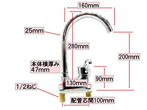 - 取付穴ピッチ 100mm 取付ねじ1/2(13) 高さ280mm×横幅130mm×厚み50mm 普通の洗面台に取付できます。