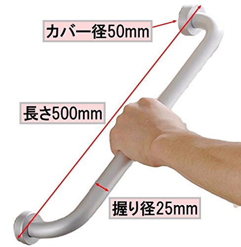 アルミ製 手すり (50cm) 浴室 トイレ 握りバー 太さ25mm 手の小さな女性や子供にぴったり 保育園 児童館 (50cm)