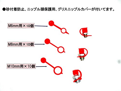 - グリスニップルカバー、M6 10個、M8 10個、M10 10個が付属してます。
