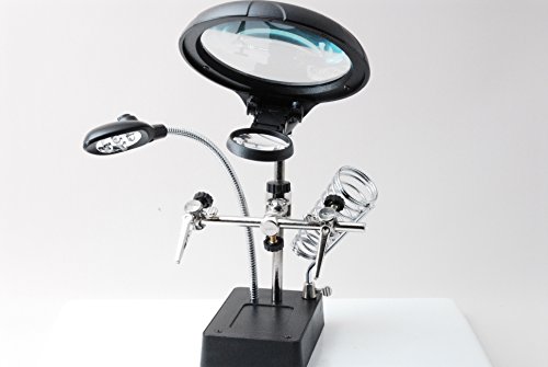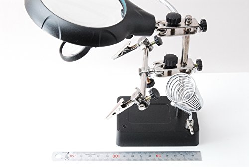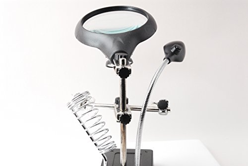 はんだ付け作業の時、両手が使えて細かい作業時には拡大ルーペと取替のレンズを使用すると2.5倍から10倍までの範囲が見えます。