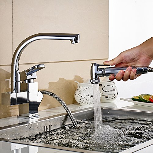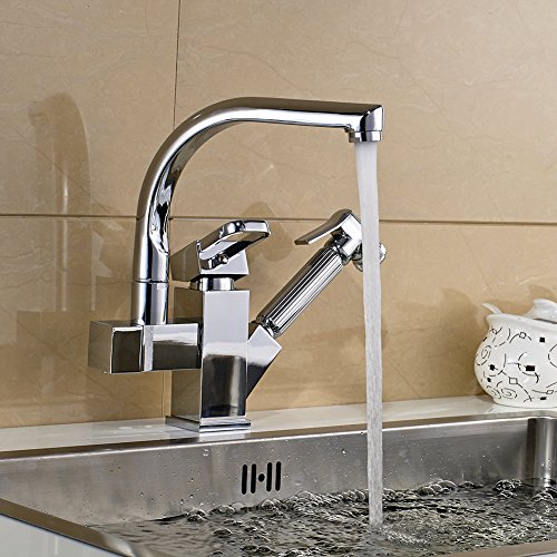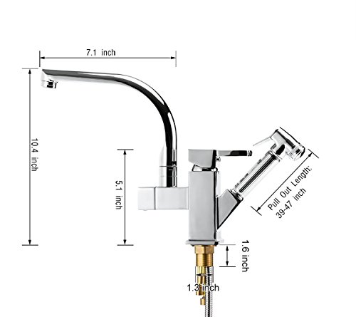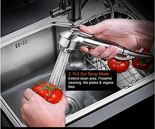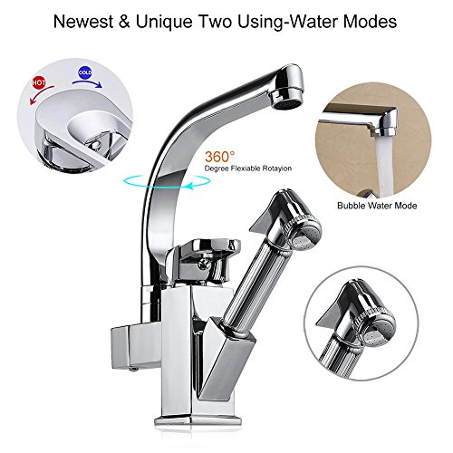 - 人気のあるデザイン--シングルハンドル回転コントロール・温水と冷水、注ぎ口は完全なシンクへのアクセスを参照してください。丈夫で引き出し式注ぎ口スプレーです。デュアルファンクションプルアウトスプレー: aeratedストリーム&強力クリーニング可能にします。
