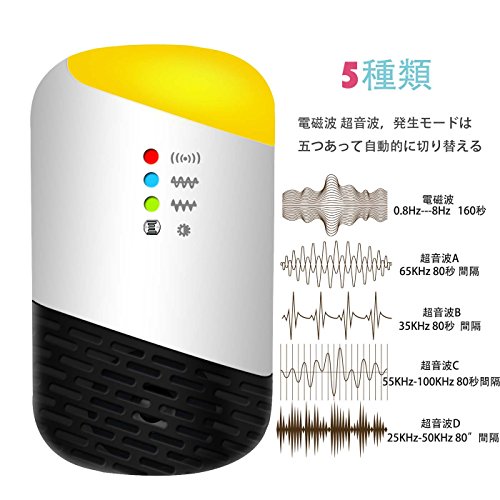 - ●【超音波機能】本装置は、同時に5種類の電波を放射することができます。ネズミの聴覚系や神経系に作用する電磁波と4種類の超音波不快によって、ネズミは撃退することが出来ます。嫌な虫を寄せ付けない超音波式害虫駆除機です。