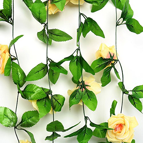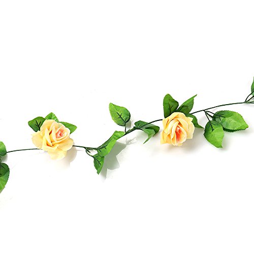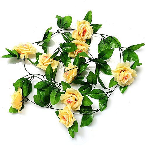 bennyue 造花 壁掛け つるバラの造花 観葉植物 玄関 クリスマス 造花 インテリア 光触媒 シルク造花 家庭飾り 4色選択 ロマンチック 家 結婚式 お祝い 誕生日 パーティー 2m 2本セット (シャンパン)