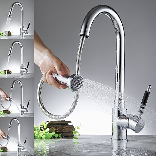 - 使いやすさをアップ:向きが自由自在なキッチン混合栓、バネ仕様の吐水管はあらゆる方向に曲げられ、シンクエリアを簡単に掃除でき、シンクのすみずみまできれいに洗い流せます。
