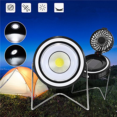ポータブルソーラー発電COB作業ライト回転ファンUSB充電緊急キャンプランプ