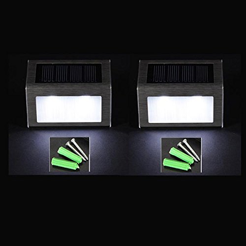 2×白ソーラーパワーLED階段パスウェイガーデンヤードウォールランプ